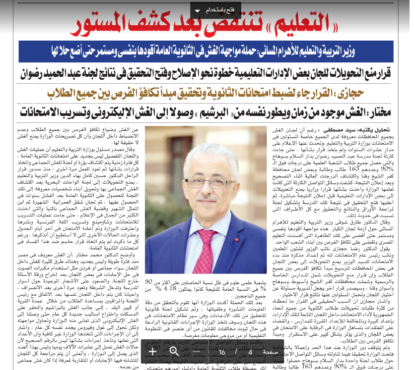اخبار التعليم يوليو 22, 2025 نتيجة الثانوية العامة 2025..ظهرت الان elabkary يعمل الكنترول الرئيسى بالسادس من أكتوبر على تجهيز نتيجة الثانوية العامة 2025، لتصل مراحلها الأخيرة لاعتمادها من الوزير محمد عبد اللطيف خلال... اقرأ المزيد