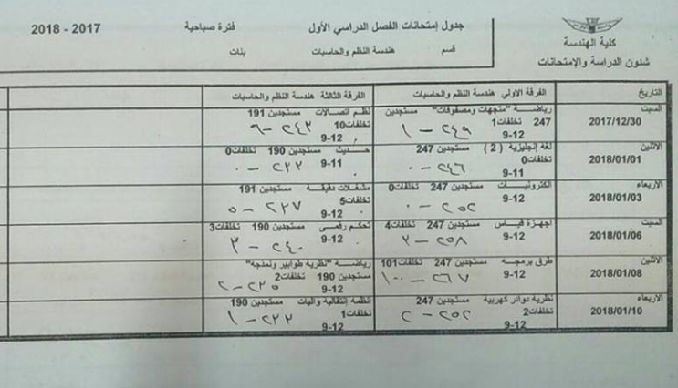 جميع جداول امتحانات الكليات الازهريه | جامعة الازهر 2018 بالصور
