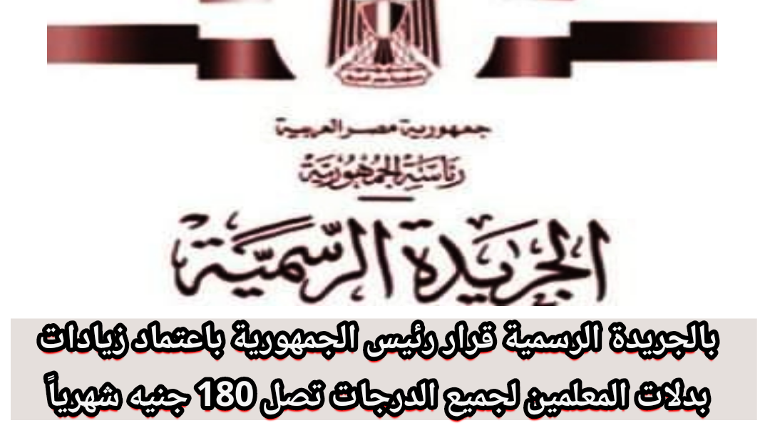 بالجريدة الرسمية قرار رئيس الجمهورية باعتماد زيادات بدلات المعلمين لجميع الدرجات تصل 180 جنيه شهرياً
