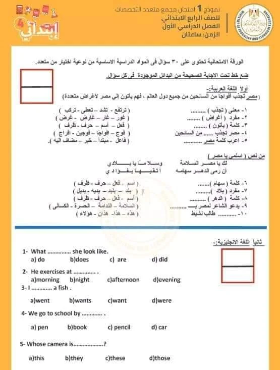 النماذج الاسترشادية للامتحانات المجمعة على منصة الوزارة رسمياً لجميع الصفوف
