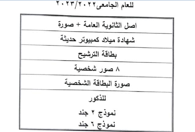 الاوراق المطلوبة للتقديم بالكلية